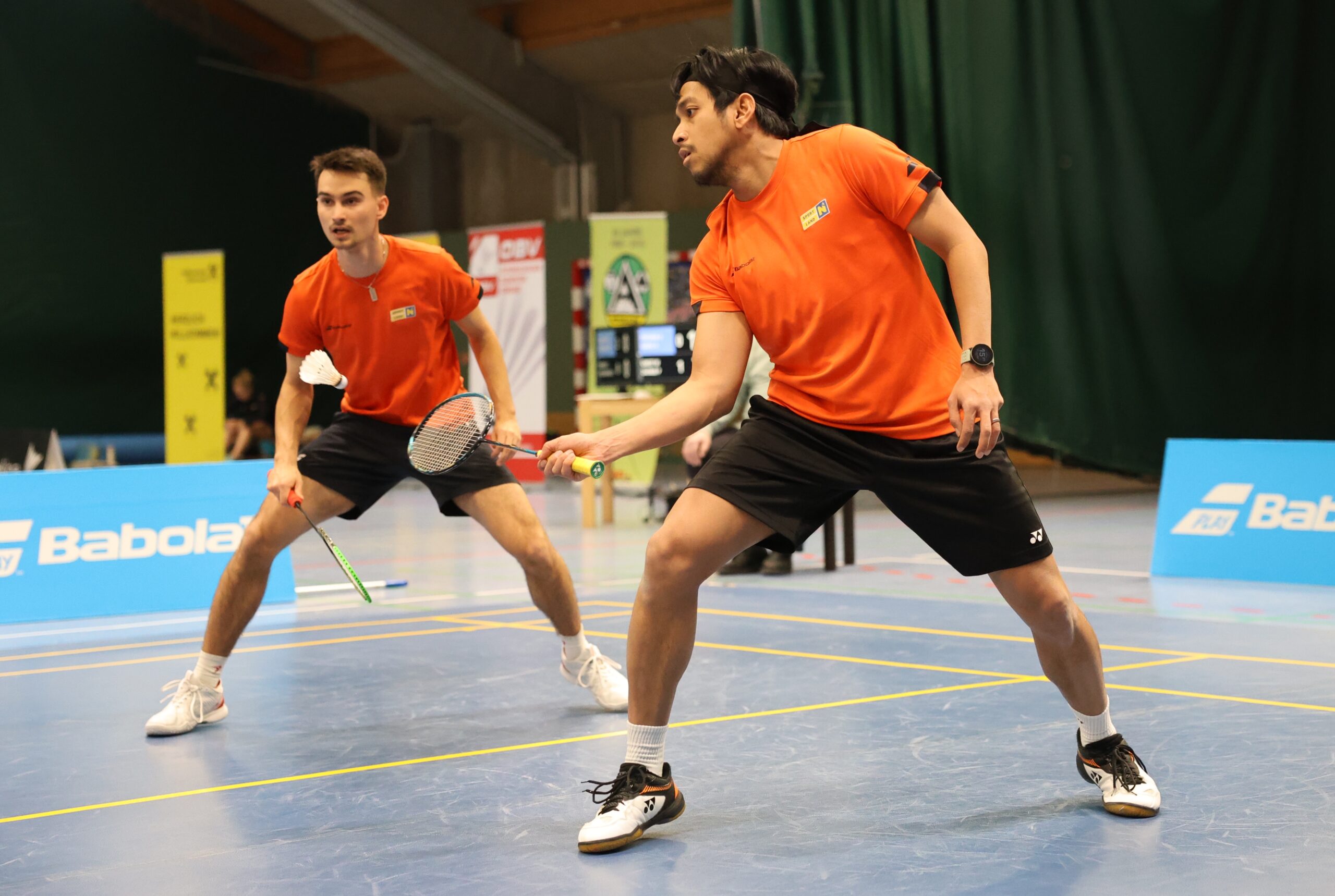 Für die Herrendoppel wählte Mannschaftsführer Adi Pratama wieder die gleiche Aufstellung wie im letzten Spiel. Muhammad Izzuddin und Pawel Smilowski traten im 1.Herrendoppel gegen Kai Niederhuber und den jungen Rumänen Luca Stefan Pandele an, während Adi Pratama und Armin Sarosi das 2. Herrendoppel gegen Wolfgang Gnedt und Peter Zauner bestritten. Pawel und Muhammad begannen ihr Spiel sehr stark und konnten den ersten Satz deutlich gewinnen. Dann aber legten die Trauner zu und es entwickelte sich ein spannendes Spiel. Aber die Pressbaumer behielten die Oberhand und siegten in 4 Sätzen mit 11:4, 11:9, 9:11, 12:10. Auch das zweite Herrendoppel war hart umkämpft. Adi und Armin mussten sich im ersten Satz knapp mit 9:11 geschlagen geben, kamen dann aber besser ins Spiel. Dadurch konnten sie die beiden Trauner in den nächsten drei Sätzen jeweils äußerst knapp besiegen (11:9, 15:13, 13:11) und so für die erfreuliche 2:0 Führung der Pressbaumer sorgen. Im anschließenden Damendoppel traten zum zweiten Mal in dieser Saison Alzbeta Basova und Serena Au Yeong für Pressbaum an. Ihnen standen die Traunerinnen Florentina Constantinescu und Denisa Maria Muscalu gegenüber. Im ersten Satz fehlte den beiden Pressbaumerinnen noch etwas die Abstimmung, aber dann harmonisierten sie immer besser. Am Ende stand ein klarer 3-Satzerfolg (13:11, 11:3, 11:4) zu Buche und mit der 3:0 Führung war der Grundstein zum Erfolg gelegt.