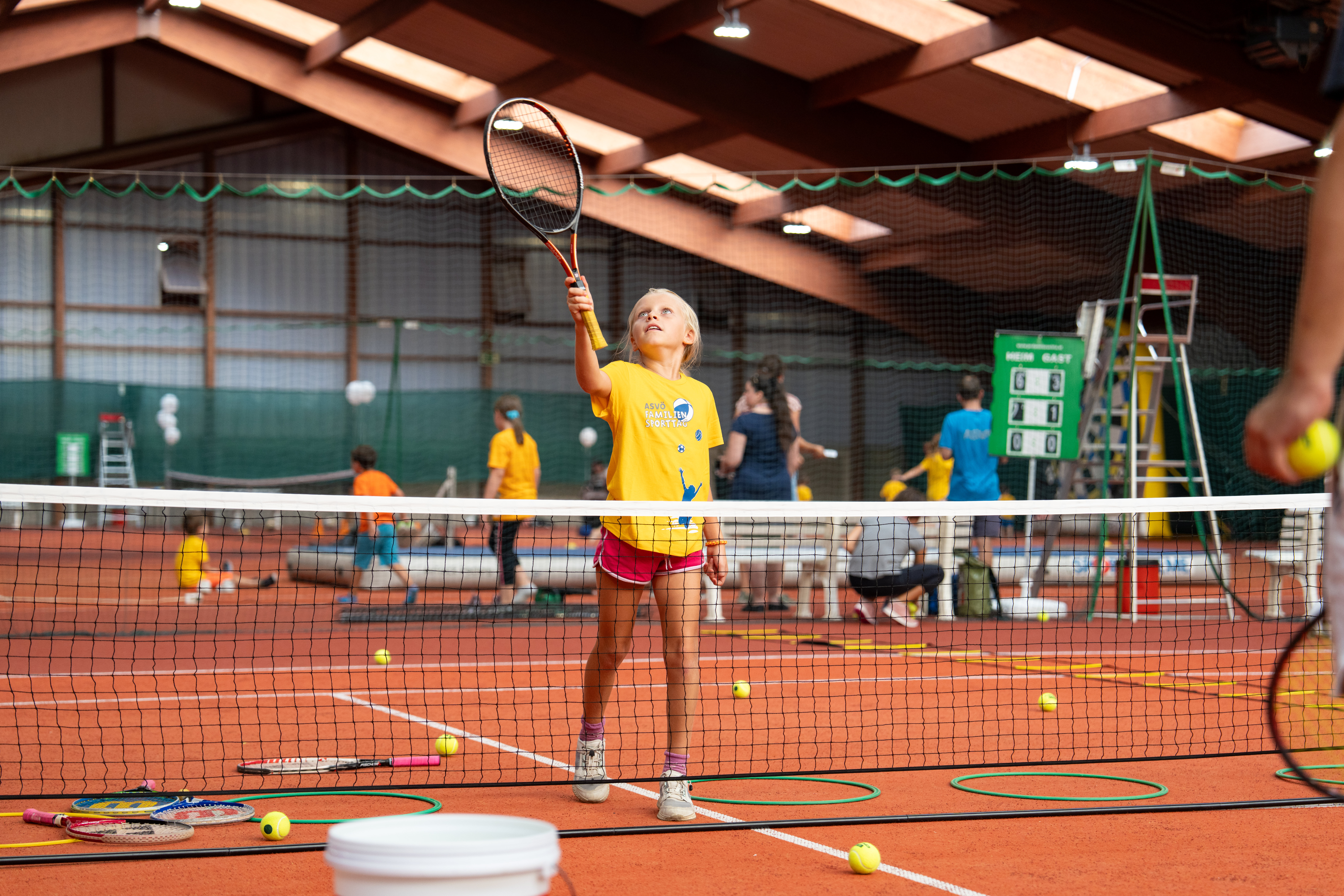 „Dank der Unterstützung der Mitarbeiter*innen der Sport- und Veranstaltungshalle sowie der Badener Gemeinde und Vereine konnten wir die Disziplinen auf mehrere Orte – wie etwa Tennishalle, Sporthalle und weitere Vereinsräume – aufteilen und so eine breite Palette an Sportarten präsentieren und testen“, freute sich ASVÖ-NÖ Vizepräsident Alexander Harbich an der Seite des Leiters der Gruppe Jugend, Sport, Gesundheit und Soziales in Baden, Manfred Barton, Moderatorin Barbara Bruckner sowie der ASVÖ-NÖ-Coaches Serkan, Igor, Nina, Martin und Jenny.